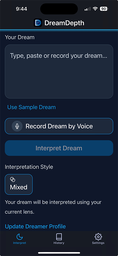 It’s designed to help you capture your dreams the moment you wake up, and come back to them later with clear, personal insight.